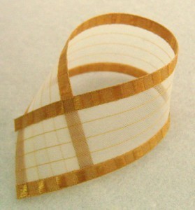 1" 5YD ORGANZA RIBBON SATIN EDGE THREE LINE LIIGHTBROWN