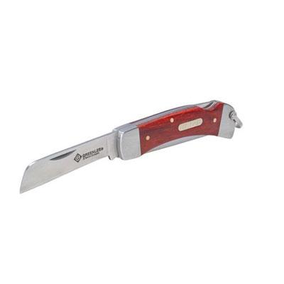 Stainless steel blade for extra durability and corrosion resistance. Premium finish rosewood handle. Lock-back for increased safety. Swivel ring for attachment option.