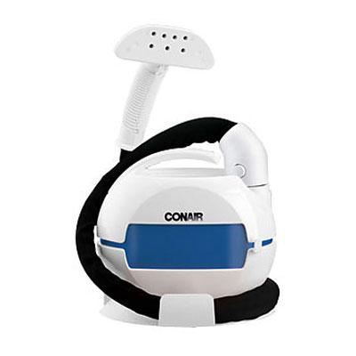 Conair GS61 Commercial Quality Compact Garment Steamer - 1600 watts. 90 second heat up time. 30 minutes of continuous steam. 5' fabric hose. 60 oz. tank volume. Power indicator light. Compact for easy storage. Convenient carry handle. 7' cord length. 360 degree rotating hose. Includes creaser, lint brush and door hanger.