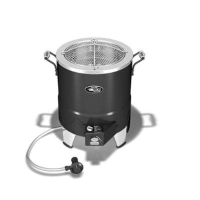 The Big Easy Exclusive Infrared Cooking Technology Stainless Steel cooking chamber emits infrared heat Infrared heat is distributed evenly from all sides Stainless Steel Burner and ignition system are protected from food grease and acids Hot air rises and escapes out the top as it heats the cooking chamber ALL THE TASTE WITH NONE OF THE HASSLE Moist on the inside and crispy on the outside Cook up to a 16lb turkey without oil. Start to Finish just as fast as oil frying without the messy clean up. Infrared heat locks in flavor and keeps turkey moist never dry. No hot oil to burn splatter or spill. No expensive oil to purchase clean up or recycle. Delicious Safe and Easy NO HOT OIL to burn splatter or spill NO EXPENSIVE OIL to purchasec cleancup or recycle 100 percent INFRARED HEAT locks in flavor and keeps food crispy on the outside moist and juicy on the inside Stainless steel burner and cooking chamber High 16k BTUs 16 lb. turkey cooking capacity Oil less Infrared Turkey Fryer Easy On Off Operation 16k BTUs 16 lb. Turkey Capacity Rotary Ignition Chrome Wire Basket Stainless Steel Food Thermometer Cool Touch Handles for transport 30 lbs. 16"" x 20"" x 24"".