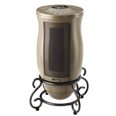 Lasko Designer Series Oscillating Ceramic Heater... With style to spare the Designer Series Oscillating Ceramic Heater provides warmth and charm to any room. Displaying a beautiful metal scrollwork base unique hourglass shape and neutral color it blends well with any d cor. Not only elegant its electronic touch-control operation allows you to fine tune the room temperature to your comfort level. Features include two quiet comfort settings an adjustable thermostat and an energy-saving seven-hour timer. The oscillation function allows you to expand your comfort zone over a broad area. Two comfort settings include high at 1500 watts/5118 BTU and low at 900 watts/3070 BTU; Energy Usage 1.5 Kilowatts per hour/1500 watt setting and 0.9 Kilowatts per hour/900 watt setting; Electronic touch-control operation; Oscillation for Full-Room Coverage; Adjustable thermostat; Seven-hour timer; Built-In Ceramic Safety; Automatic Overheat Protection.