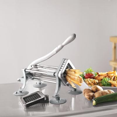 Crank out the best tasting French fries (or sweet potato fries) you have ever tasted! This reliable heavy duty all metal cutter turns out uniform fries zucchini sticks and other favorites with one push of the handle. Includes suction feet for use on smooth countertops or can be permanently mounted on countertop or wall. Includes two cutting plates(3/8"" & 1/2"") for making thin cut or regular fries.