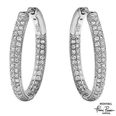 CLASSIC DOUBLE ROW WHITE CUBIC ZIRCONIA 1" INCH ROUND HOOP EARRINGS IN 925 STERLING SILVER