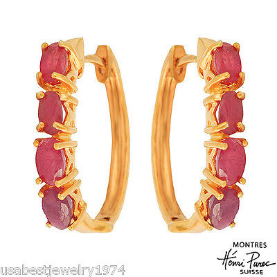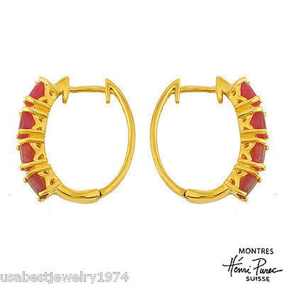 HENRI PUREC 2.0 CTW NATURAL RED RUBY HOOP EARRINGS IN GOLD OVER 925 SILVER
