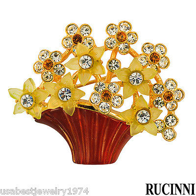 SquareTrade © AP6.0 RUCINNI LIMITED NEW BASKET MULTICOLOR RESIN SWAROVSKI CRYSTALS GIFT BROOCH Retails For: $105