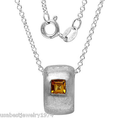 BACHRACH Genuine Citrine Necklace Made in 925 Sterling Silver Length 17 inch