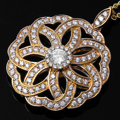 CUBIC ZIRCONIA FLOWER DESIGN NECKLACE IN YELLOW GOLD ON 925 STERLING SILVER 18"