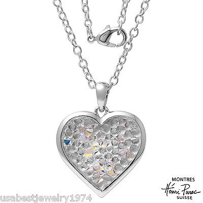 HENRI PUREC AMAZING LOVE HEART WITH SWAROVSKI CRYSTALS NECKLACE MADE in SILVER OVER BRONZE 18" MSRP $226