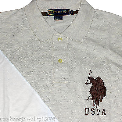 US POLO ASSN USPA MEN's POLO SHIRT BIG PONY SIZE L MSRP $40 BEIGE BROWN STRIPED