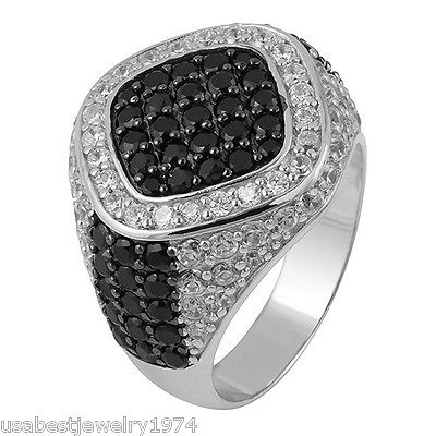 MEN'S MICRO PAVE CUBIC ZIRCONIA WHITE ROUND BLACK SQUARE 12.2 GRAM RING SIZE 9