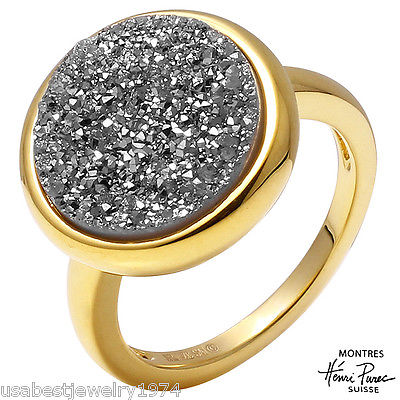 HENRI PUREC 15 MM DRUZY AGATE RING IN YELLOW GOLD OVER BRONZE SIZE 7 RETAIL $305