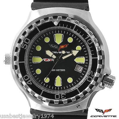 CORVETTE BLACK DIAL Stainless Steel Swiss Movement Watch with Date RETAIL $790