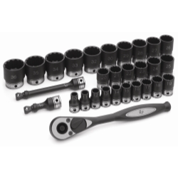 The thin wall design of chrome hand sockets are combined with the strength and durability of Grey Pneumatic impact sockets to create the Duo-Socket™. This 29 piece set is built specifically to address the needs of the professional technician using hand tools, cordless impact tools and air tools. The Duo-Socket™ provides one socket for all applications. This set includes the following: 24 tooth quick release ratchet, 3" and 6" wobble extension and socket sizes include: 10mm-36mm.