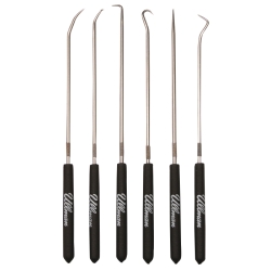 Set includes: combination pick, complex pick, 90 degree pick, hook pick, straight pick and double angle pick.