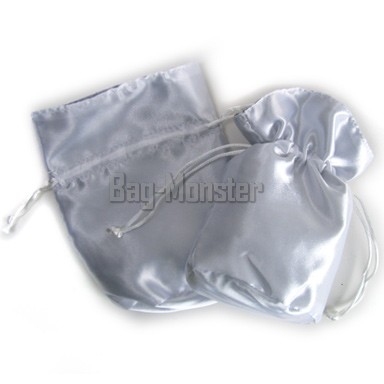 6 WHITE Round Bottom Satin Pouches Wedding Favor Bags