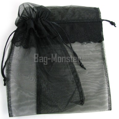 10 BLACK Lace Organza Pouches Wedding Favor Bags 6x9"