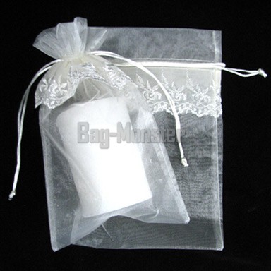 10 CREAM Lace Organza Pouches Wedding Favor Bags 6x9"