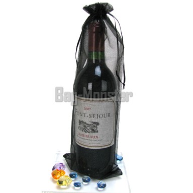 10 BLACK Organza Pouches Wedding Favor Wine Bottle Bags