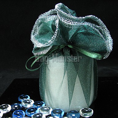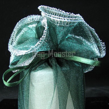 30 DARK GREEN Silver-edge Organza Circle Favor Wrap 15"