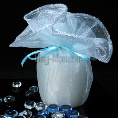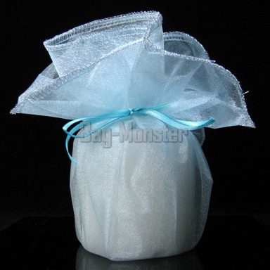 30 LT BLUE Silver-edge Organza Wedding Favor Wrap 15"
