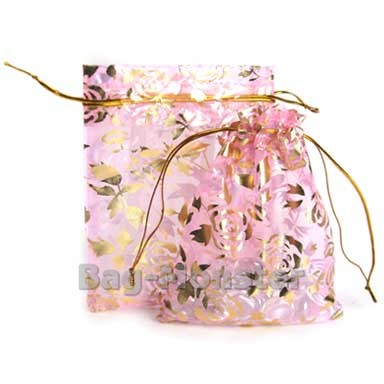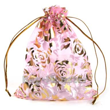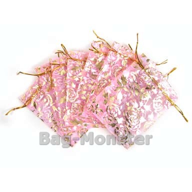 50 PINK GOLD ROSE Organza Pouches Wedding Favor Bags M