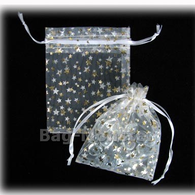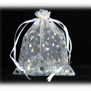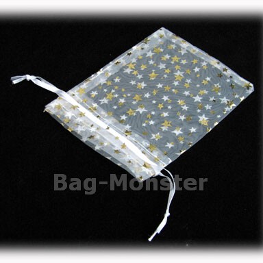 50 WHITE GOLD STAR Organza Pouches Wedding Bags 2x2.75"