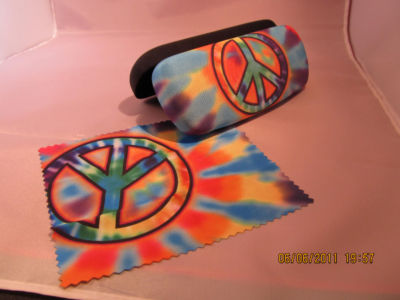 This delightful sunglass case would be fun to have. The case is hard shell with cloth padding on interior and exterior. Comes with a lens cleaner cloth that matches the case. Buyer to pay all shipping and handling fees.