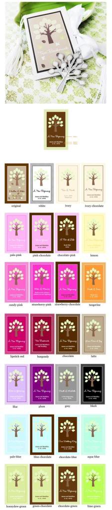 Mark your "New Beginning" with the ideal gift for this fall - a stunning stainless steel bookmark carved into a beautiful tree. Guests will be reminded of your blessed union each time they pick up their favorite book. Each silver colored tree comes in its very own shimmery white book shaped folder with a white satin ribbon closure. Bookmarks are strung to a white tassel that dangles from the top of each folder. Each folder is labeled with the words "Tree Bookmark". This beautiful bookmark with its creative packaging is sure to be enjoyed by guests for years to come. And here's an idea - try slipping in this tree bookmark along with your save-the-date cards to make sure guests "mark" the date for your fall event! Size: Bookmark - 2.5", finished folder - 2.75" x 4.25". Matching personalized labels are available for $0.25 per label when ordering 24 or more of this item. Line 1: 12 Characters Line 2: 16 Characters Line 3: 16 Characters