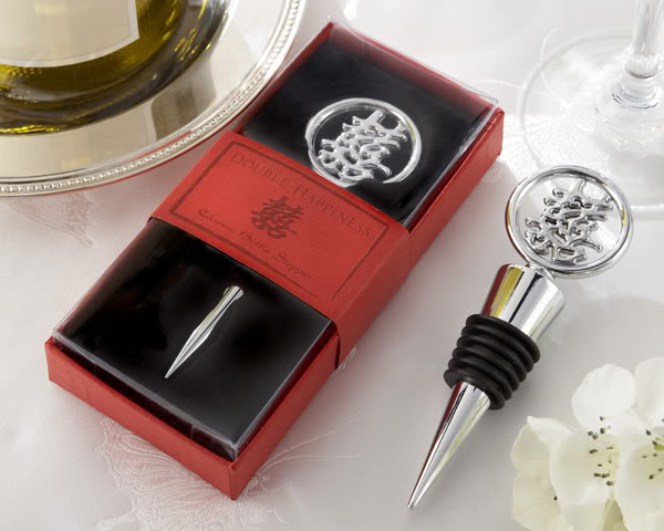 "Double Happiness" Elegant Chrome Bottle Stopper in Asian-Themed Gift Box ** Cheaper Rates Available for Larger Quantities ** Please let us know if you would like additional quantities or if you are looking for less pieces. We are more than happy to work with you to meet your needs.