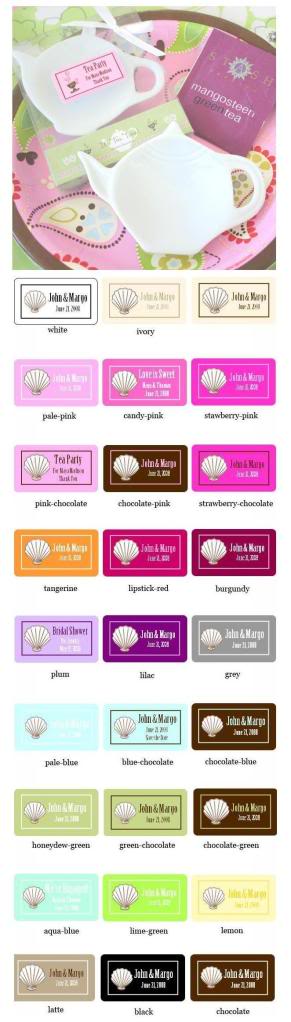 It's Tea Time! This beautiful little teapot shaped dish makes a perfectly practical giftto treat your guests with at then end of your party. Open up the box and fill with some candy or treats or just present it as is. With plenty of uses, a candy dish, tea bagcaddy, soap dish, butter dish or spoon rest, ladies will be pleased with this proper little gift. Each Teapot shaped dish comes packaged in a clear box with white satin bow and the words "It's Tea Time" printed on a tea themed setting. Size of Dish: 3.25" x 4.75", Size of packing: 3.75" x 4.75" Personalized Labels available when ordering 24 or more of this item for $0.25 each. Max. Characters per line (including spaces): Line 1: 12 Characters Line 2: 16 Characters Line 3: 16 Characters Note: This product is out of stock until 06/10/09.
