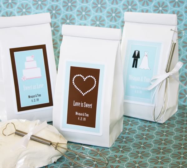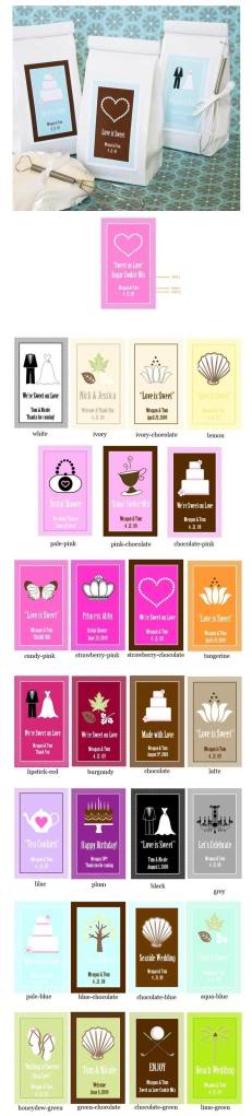 Show the sweet and tender side of the new couple with our "Love is Sweet" Sugar Cookie Mix! This American favorite is certain to be a fun and delicious favor for your friends to bake when they go home. Personalization is included. Just select from an assortment of pics to find the theme design that's just right for you. Then choose the perfect color, add your names, wedding date and personal message for a truly custom wedding favor that is all your own! Try labeling your Sugar Cookie Mix favors with our favorites such as "Sweet on Love" or "Love is Sweet", etc. Create the perfect gift by pairing these personalized mixes with our optional heart handle mini whisk. Optional whisks come with a white satin bow and a heart shaped handle that has a small opening so you can easily slip it through a hole. Some assembly required (punching a hole in the muffin mix package and slipping the heart handle of the whisk through it.) Each white gloss pouch contains 6 oz. of Gourmet Sugar Cookie Mix (makes approx. 8 cookies). Directions are printed on the back. Personalized labels come unattached from the Cookie Mix. Due to the personalization for this product the minimum order is 24. Processed on equipment handling wheat, egg, dairy, and tree nut ingredients. Size: 6.5" x 3.5" Design Options
