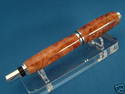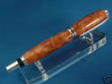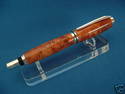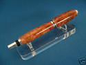 This is a beautiful new writing instrument from Bill's Talented Turnings. The pen pictured is the pen you get. This pen is called a Baron Sterling Silver Fountain Pen. This pen is made from a beautiful highly figured piece of Amboyna Burl. I hand turned the pen on the wood lathe in my studio workshop. The wood is finished with several coats of CA Glue. This is the toughest, long lasting finish I have been able to find. The wood will stay bright and shinny for many years. I have personally carried a pen with this type of finish in my pocket for 4 years and the wood is just as shinny as the day I made it. This pen is a great conversation piece and truly a piece of art. The pen pictured is a fountain pen. It will be shipped with one disposable ink cartridge and one refillable ink pump.