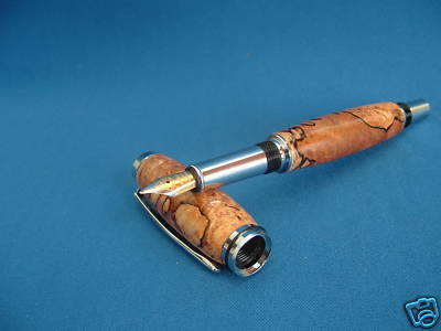 This is a beautiful new writing instrument from Bill's Talented Turnings. The pen pictured is the pen you get in this auction. This pen is made from a beautiful piece of spalted red maple burl. I turned it on the wood lathe in my studio workshop. This is a great conversation piece and truly a piece of art. The pen pictured is a Fountain pen. It comes supplied with a black disposable ink cartridge and a refillable resevor that you can use if you prefer to load your own ink. Disposable ink cartridges are available at most office supply stores.