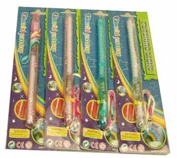 "Fun Flashing Light Pen. 8"" long. Comes with three different flashing light rythums plus changing color bar. key ring attached." Case Pack 240