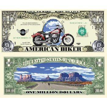Biker Bill. Four color printing. Front and back print. Same size as actual currency. Same look and feel as real money. Great for resale or use in promotions or auctions. Case Pack 100