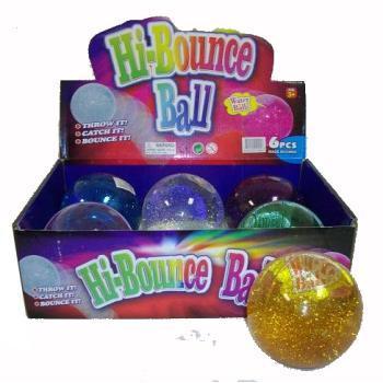 This is the item for 2009. If you are not selling these you are missing the boat. Hi Bounce Water Glitter Balls 100 mm bounce super high and have real cool glitter inside of them. Display boxes included. These are so cool. Case Pack 24