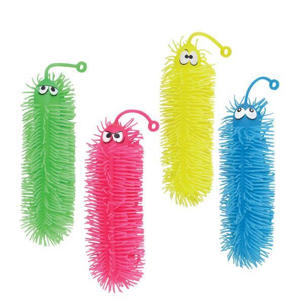 "These puffer worms have eyes and feature rubbery spikes and an elastic loop, making this terrific toy a unique yo yo. Assortment of colors may vary." Case Pack 24
