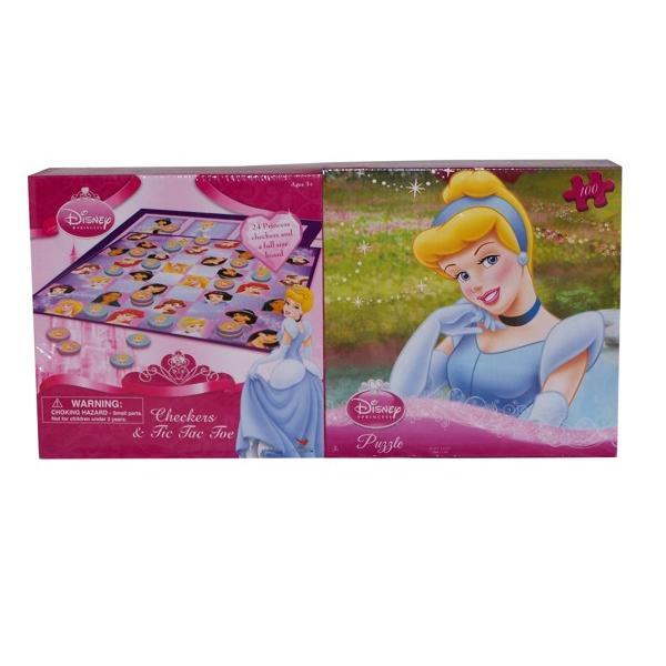 "Disney 2 Pack Puzzle & Game Assortment. Bundle the fun with these puzzle and game sets. Your kids can put together a puzzle or play bingo, checkers & tic tac toe featuring their favorite Disney Characters including the Disney Princesses and Cars characters. Bingo is for ages 3 and up and features the Disney Cars characters. The checkers & tic tac toe are for ages 3 & up and feature the Disney Princess characters. Each puzzle measures 10.375"" by 9.125"". The Disney Princess puzzle has 100 pieces and is for ages 5 and up. The cars puzzle has 48 pieces and is for ages 4 and up. Case pack: 10 - 2 pack bundles." Case Pack 10