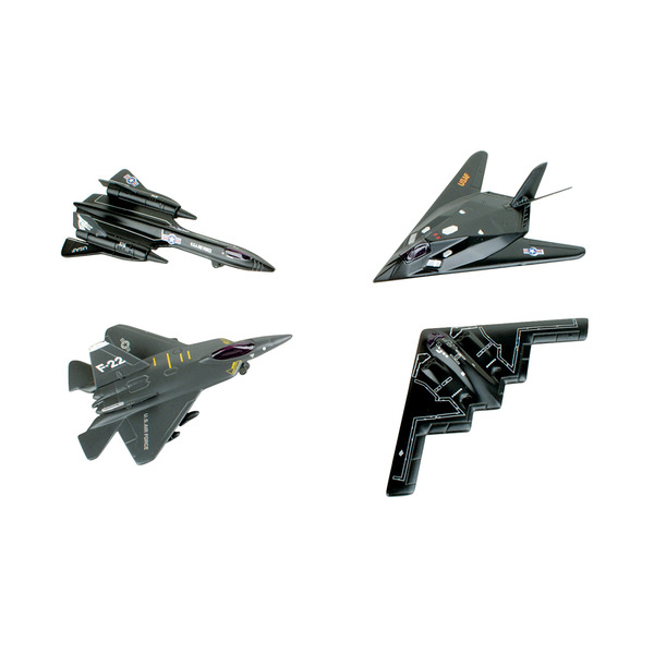 "Fast and fun! Pull these stealth planes back to watch 'em accelerate swiftly forward. Assortment of colors and designs may vary. Each dozen in colorful display box." Case Pack 24