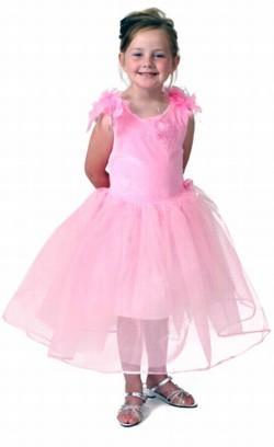 Dance and twirl in this darling ballerina dress. Soft velour bodice with feather trim. Three layer chiffon skirt. Velcro closure in back for easy wear.