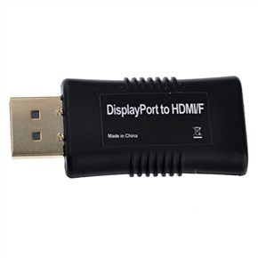 Black protable mini displayport to HDMI converter adapter has the ability to deliver high definition digital audio and video to the display in packet data format, allowing selective screen area updates and provides power saving features required for noteb