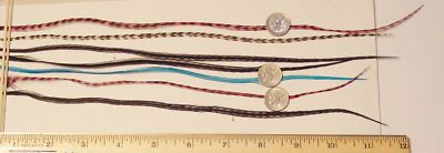 7 grizzly feathers for extensions each are in the 11" to 13" range. They are all from Whiting, premium USA raised birds.
