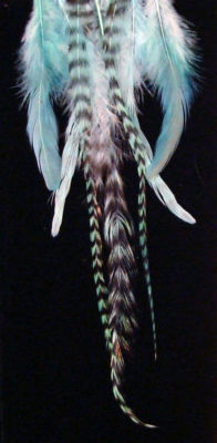 7 feather grizzly extensions that are up to 8", from Whiting, premium USA raised birds. All feathers have been hand washed and dyed using professional acid dyes which produce brighter colors and greater color fastness.