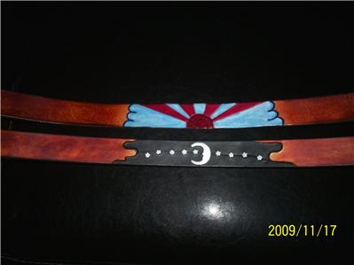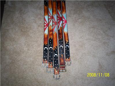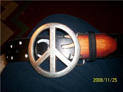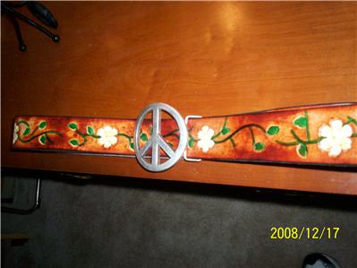 PEACE SIGN BUCKLE &SUN TATTOO HANDPAINTED LEATHER BELT