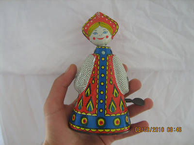 VINTAGE METAL MECHANICAL DOLL FROM RUSSIA with Key