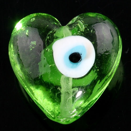 1" GREEN LAMPWORK GLASS HEART PENDANT EYES BEAD