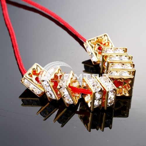10pcs WHITE CRYSTAL SPACER GOLD PLATED SQUARE BEADS 8MM jlm17 - Sku# TTjlm17