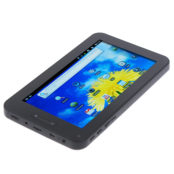Specifications: | Operation System | Google Android 2.3 | | CPU | Contex A8 1.2Ghz , Three-coreï¼CPU+GPU+VPUï¼? support Flash 10.2 | | Memory | 512M DDR3 | | HDD 4GB | | Support external TF card, maximum capacity of 32GB | | Certificates | FCC, CE, RoHS compliant, WiFi certificate | | Language | Czech, Danish, German, English (UK), English (US), Spanish, Spanish(US), French, Italian, Dutch, Norwegian, Polish, Portuguese (Brazil), Portuguese (Portugal), Swedish, Turkish, Greek, Russian, Arabic, Thai, Korean, Simplified Chinese, Traditional Chinese, Japanese. | | G-sensor | 3-dimensional gravity sensing | | Screen | 7" LCD (16:9) | | Pixel: 800*480 | | WiFi | WIFI: IEEE802.11b/g wireless network | | 3G | Built in WCDMAï¼EM770) standard 3G Internet access; if necessary, we can offer to install CDMA-EVDO(EM660) or TD-SCDMA(MU560) module. (One Choice from Three) | | Touch Panel | Capacitive Touch Screen (2 point) | | Audio format | MP3, WMA, MP2, OGG, AAC, M4A, MA4, FLAC, APE, 3GP, WAV | Video format | Standard 1080P video (AVI, 3GP, MP4, MPG, RM, RMVB, MOV, FLV, WMV, MKV) | | Picture format | JPG, JPEG, GIF, BMP, PNG | | Camera | Built-in 0.3 MP camera in the front | | Battery | Battery capacity: 4400mA | | Battery life: WiFi Internet access for about 6 hours, 3G Internet access for about 4 hours | | I/O Port | 1 x USB2.0 OTG | | 1 x 720P/1080i HDMI HD output | | 1 x DC 5V in | | 1 x 3.5mm stereo headset | | 1 x TF card slot | | Buttons | Volume Control | | Power Key | | Menu Key | | Back Key | | Home Key | | Other | Color | Body | Black + White | | Material | Plastic | | Item Size | 193mm x 117mm x 14mm | | Package size | 229mm x 154mm x 68mm | | Item weight | 397g | | Package Weight | 684g | | Power Adapter | Input | 100-240V 0.3A | | Output | 5V 2A | | Plug | US | | Package including | 1 x Capacitive Tablet PC | | 1 x Power Adapter | | 1 x USB Cable | | 1 x USB Adapter | | 1 x User Manual |