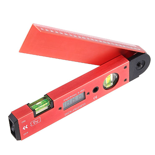 Specifications: * Color: Red * Material: Stainless Aluminum * Working range of angle measuring: 0 to 185 degrees * Resolution: 0.1 degree * Angle precision: ±0.1 degree * Operating temperature: 0 to 50 °C * Storage temperature: -10 to 60 °C * Power: 1*9V battery (included) * Size of the LCD display: 45*19mm * Unit size: approx. 27.8 (L) cm x 5.2 (W) cm x 2.4 (Thickness) cm * Unit weight: approx. 397g (batteries included)