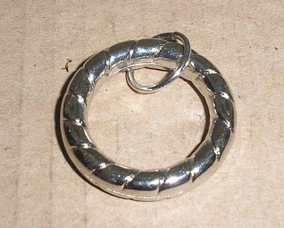 THIS LISTING BEING FOR A COSTUME JEWELLERY DECORATIVE SILVER COLOURED RING PENDANT 4cm IN DIAMETER.